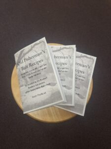 • The “Old Fisherman’s Bait Recipes” booklet is now available for purchase in our gift shop and online! A recreation and transcription of a 70-year-old handwritten manuscript in fountain pen; this booklet includes old-fashioned bait recipes, angler folklore, and fishing tips and tricks! We think these are likely the very recipes that the Runbeck Brothers were making and selling in the mid-1950s as part of their bait business, even as the flour mill was coming to an end. It’s just $5+tax and the applicable rate for media mail if you’re having them sent to you.
